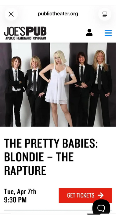 I"M BACK ON KEYBOARDS AGAIN WITH THE PRETTY BABIES! So excited there are no words. This all female Blondie tribute band invited me to join years ago and it was a blast. We're back- at Joe's Pub in NYC on March 25th! Fronted by none other than Tammy Faye Starlite! 9:30 p.m.